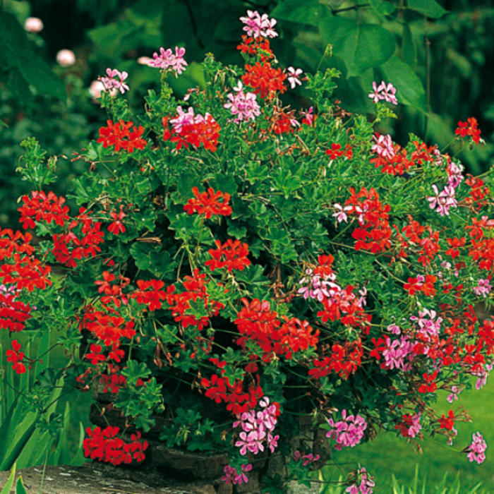 Le pélargonium, ou géranium, est la reine de nos maisons et balcons. Dans le langage des fleurs il symbolise l'amitié, le bonheur, l'éloquence et raffinement. Le géranium lierre aux fleurs abondantes est l’incontournable ornement des façades et des corbeilles suspendues. Il existe un grand nombre de variétés de géraniums, star du fleurissement et jardin d’agrément. Il faut leur réserver un endroit ensoleillé à l’abri des vents forts.